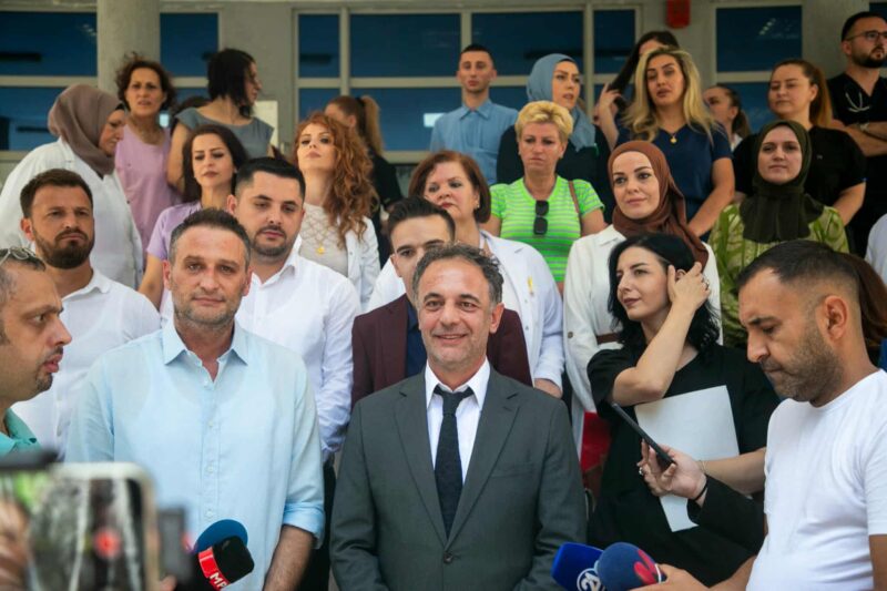 Министерот за здравство, Азир Алиу, денеска во Тетово оствари средба со 155 лица – медицински персонал и со раководството на Клиничка болница Тетово, при што инфирмираше дека конечно се става крај на долгогодишната неправда, и ќе ги добијат договорите. – Една институција за да биде компатибилна и да нуди услуги кои се квалитетни има три неопходни столба, едниот е инфраструктурен, вториот е организациски и третиот е човечкиот фактор, за кој веруваме дека е најважен, затоа инвестираме во подобрување на капацитетот на здравствените институции. Задоволство ми е што токму првата средба ми беше тука со колегите, кои имаат еден од највиталните нерешени проблеми, а тоа е вработувањето. Некои од нив работеа и по 10 години, а дел од нив по месец или година беа и без плата за да бидат дел од институцијата. Денес по месец ипол задоволни сме што тие се веќе дел од КБ Тетово, 155 вработени чии процедури административно ги завршивме. Сега крајниот чекор е за полагање администратеивен тест, за да може да се потпишат договорите меѓу директорот и вработените, изјави министерот Алиу. Министерството за здравство останува посветено на принципите на еднаквост, почит и институционална правда, особено кон професиите кои се столб на здравствениот систем.