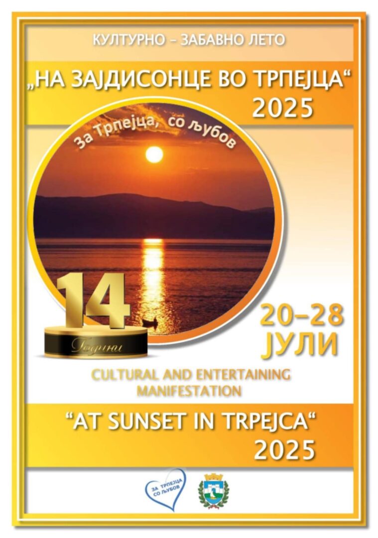 Од 20 до 28 јули, годинава по 14 пат во Трпејца ќе се одржи културно – забавната манифестација „На зајдисонце“. Организаторот Здржението „За Трпејца со љубов“, ветува интересна програма за туристите и домаќините. На денот на отворањето во недела од 20.30 часот по поздравниот говор на претставник на општина Охрид под чие покровителство се одржува манифестацијата, Фото клубот „Охрид“ ќе ја претстави најновата продукција на фотографии насловена „Убавината на дофат“. Вечерта со својот настап музички ќе ја „обои“ познатиот саксофонист Горан Папаз. Во понеделник на 21 јули во истиот термин ќе биде промовиран првиот роман на младата трпејчанка Анастасија Ристеска „Париска сложувалка“ напишан на англиски јазик. Промотор ќе биде д-р Габриела Неделкоска. Претходно деца од Трпејца пред публиката ќе ги покажат своите таленти. Филмот како уметност годинава има посебно место на Зајдисонцето во Трпејца. Под ведро небо како што впрочем сите овие години се одвива манифестацијата во вторник на 22 јули ќе гостува Антонио Вељаноски, млад режисер, сценарист и фотограф кој живее на реалцијата Охрид – Прага. Присутните ќе можат да го погледаат неговиот филм „И(с)згубени“. Во среда од 19 и 30 часот ќе се одржи популарната Трка со куфери по скалинадата во Трпејца која има натпреварувачки карактер а потоа ќе настапат Мила, Македонка и Билјана. Трите девојки недоамна дипломираа на ФМУ во Скопје. Ден потоа гостува Драмското студио „Цвет“ под раководство на Драгана Боцеска со претставата „Приказни“ а пред тоа ќе бидат прикажани и наградени најдобрите три фотографии од Трпејца направени со мобилен од страна на туристите. Петокот е резервиран за промоцијата на монографијата „Златните години на КК „Рибар“ од Трпејца од авторот м-р Милчо Јованоски. Промотор ќе биде новинарот и публицист Горан Момироски. Претпладнето ќе се одржи традиционалната регата „Номче Митрески“. Во сабота на 26 јули ќе гостува Театарскиот проект на ОСУ „Св. Климент Охридски“од Охрид со „Виолината што одекнува низ вековите“од авторот и ментор м-р Михаил Патчев а ќе биде прикажан и документарецот „Охридските трубадури“.