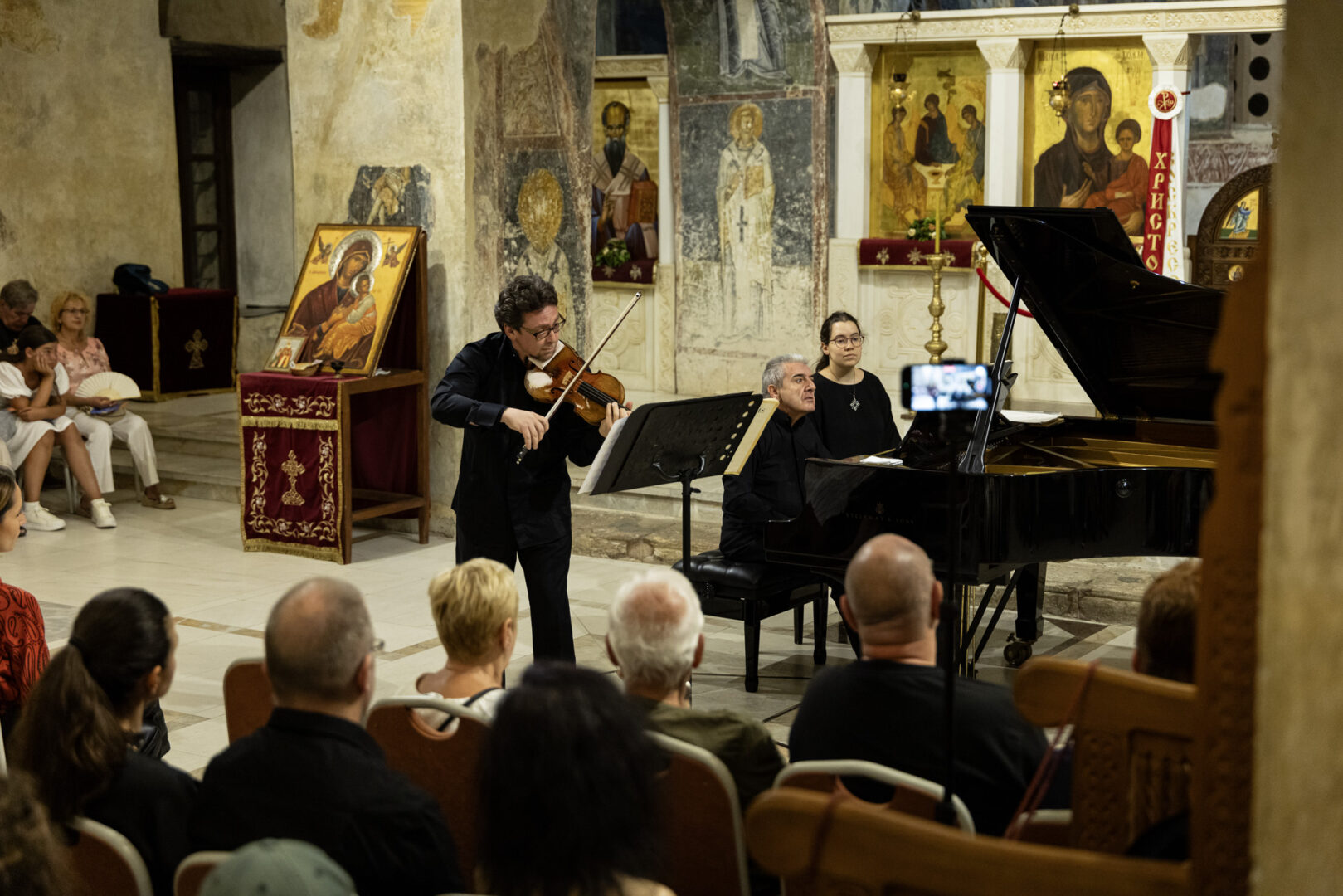 Репертоарот на класична музика на „Охридско лето“ вчеравечер продолжи со концерт на македонскиот виолинист Емир Имеров и израелскиот пијанист Ваг Папиан. Извонредните музичари ноќта ја започнаа со „Скерцо“ од Јоханес Брамс, а ја продолжија со композицијата „Фантазија во C-dur D934“ од Франц Шуберт. Репертоарот беше заокружен со прекрасна изведба на Бетовеновата „Соната бр.9 A-dur оп.47 „Кројцер“. Емир Имеров е роден во Скопје, а живее во Германија од 1991 година. Студира на Музичката академија во Вурцбург со професорот Г. Жислин во чија класа дипломира во 2000 година. За време на студиите освојува прва награда на натпреварот „Ф. Менделсон“ и добива двегодишна стипендија. Долг период настапува со квартетот „Виртуози на Санкт Петербург“ на турнеи во САД, Австралија, поранешен СССР и Германија. Во 1998 година со неговото клавирско трио освојува прва награда на натпреварот во Тулуз, а истата година тој е добитник на втора награда на натпреварот за виолинисти во Ташкент. Од 2004 година е концерт-мајстор на Симфонискиот оркестар на театарот во Крефелд-Минхенглајдбах и од 2010 година на ансамблот „Европски солисти“ во Луксембург. Член е на клавирското трио „Бенџамин“ заедно со Ваг Папиан и Александар Кагановски. -Ова е мој трети пат настап на фестивалот „Охридско лето“, еднаш со виолинистот Максим Венгеров, вториот пат со нашето трио „Бенџамин“, и еве, вечерва повторно ќе свирам за одличната публика. Многу ми значи овој подиум затоа што „Охридско лето“ е еден од најреномираните фестивали во Европа и пошироко. Со колегата Папиан често настапуваме со нашето трио, но и како дуо, рече виолинистот Имеров. Реномираниот пијанист и диригент Ваг Папиан кариерата ја започнува во 1979 година по победата на Меѓународниот натпревар „Виана да Мота“. Дипломира пијано на Московскиот конзерваториум, а потоа студира и диригирање во класата на Иља Мусин на Конзерваториумот во Санкт Петербург. Во 1984 година станува асистент диригент на Ерменската филхармонија, а подоцна станува и уметнички раководител и шеф диригент на овој оркестар. Откако емигрира во Израел во 1990 година, како диригент работи со оркестарот во Бир Шива и со Симфонискиот оркестар во Ерусалим. Диригира со бројни оркестри низ светот, настапува на престижни фестивали, а како камерен партнер на виолинистот Максим Венгеров остварува бројни снимки за Еми Класикс. Во сферата на операта диригира продукции на „Кармен“, „Дон Џовани“ и „Норма“, а во моментот е гостин диригент во Националната опера во Ерменија и професор на академијата „Самуел Рубин“ во Тел Авив, а е гостин предавач на високи музички школи во неколку европски земји. Член е на клавирското трио „Бенџамин“.