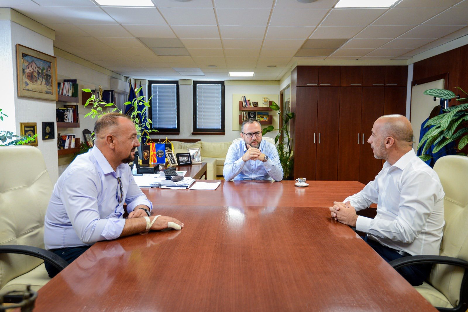 Министерот за внатрешни работи, Панче Тошковски, по вчерашниот настан во Тетово, каде полициски службеници спречија трагедија и спасија млад живот, денес го прими и разговараше со колегата Беким Исмани, кој со исклучителна храброст и присебност ја спречи девојката да скокне и да си го одземе животот, а притоа беше повреден од ножот кој таа го држела во раката. „Станува збор за млада девојка, жртва на тешка животна ситуација и психолошка криза. Благодарение на навремената и решителна интервенција на нашите полициски службеници од СВР Тетово, таа денеска е жива и надвор од опасност. Ова не е само службено постапување, ова е чин на пожртвуваност, хуманост и длабока посветеност на мисијата да се заштити секој човечки живот. Во рамки на законските можности, ќе го наградам колегата Беким Исмани како признание за неговата храброст, професионализам и несебично постапување“, рече Тошковски. Тој нагласи дека вистинска сила на полициската професија се гледа во најтешките моменти.