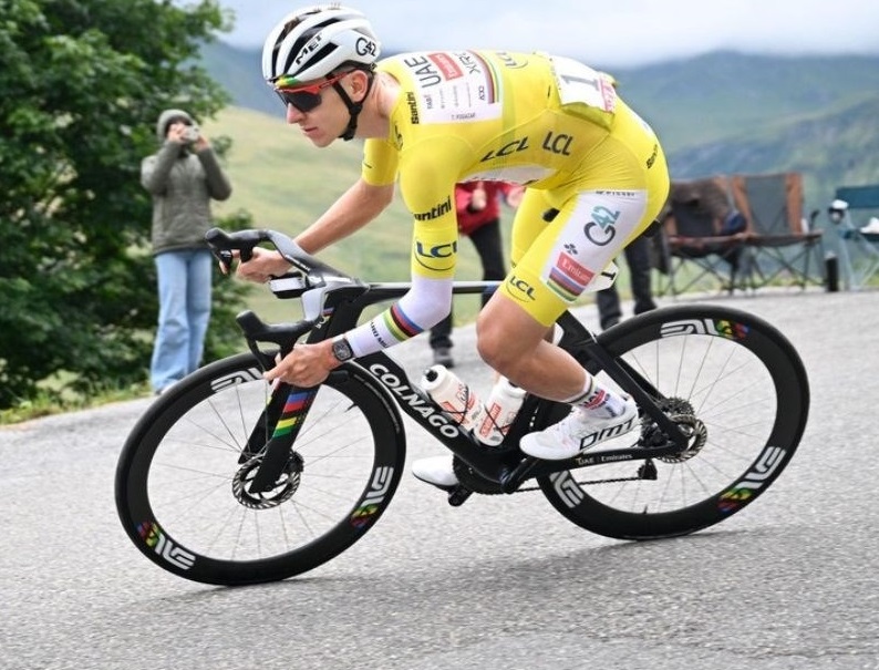 Тадеј Погачар (26) е словенечки велосипедист и еден од најдоминантните возачи на својата генерација. Со 21 година, тој го освои Тур де Франс (три пати во кариерата), а до ден денес има освоено бројни победи на најголемите трки во светот. Познат е по својата експлозивност на искачувањата, техничката вештина и тактичката зрелост. Вози за тимот на ОАЕ „Емирати“ и постојано го потврдува својот статус на еден од најдобрите возачи во историјата на велосипедизмот. Неговиот тим објави на социјалните мрежи фотографија од велосипедот „Колнаго“ што Погачар го вози на Тур де Франс. Станува збор за специјална верзија на „Колнаго V5R“. Тежи само околу 7 килограми поради неговата конструкција од ултралесна карбонска тркачка рамка, чија конструкција е многу цврста и лесна. Серијата „Колнаго V“ (V4R/V5R), особено во тимската или ограничена верзија на Тур де Франс, е меѓу најскапите сериски велосипеди во светот. Се проценува дека тркачкиот велосипед на Погачар вреди помеѓу 18 и 20 илјади евра, во зависност од изданието и дополнителната опрема, што го прави најскапиот велосипед во светот. За споредба, велосипедите од пониската серија Колнаго или постарите генерации (на пр. V3, C-RS 105) се движат помеѓу 2.500 и 6.000 евра.